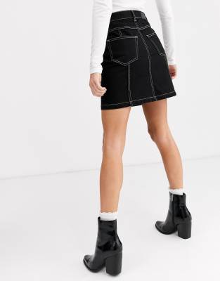 White denim skirt with black hot sale stitching