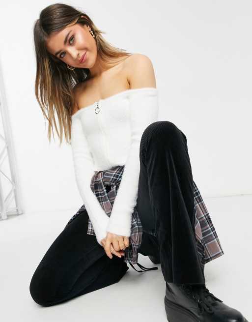 White fluffy bardot hot sale jumper