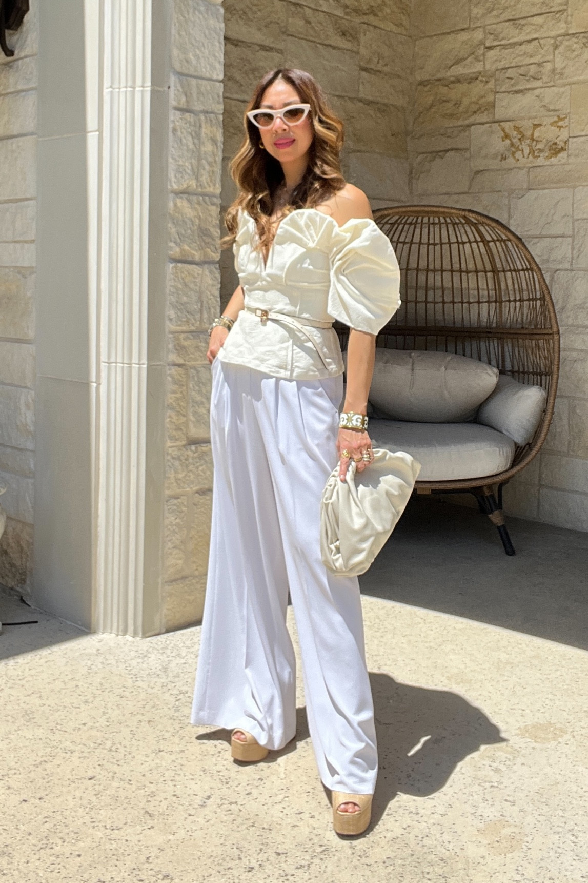 White palazzo hot sale outfit