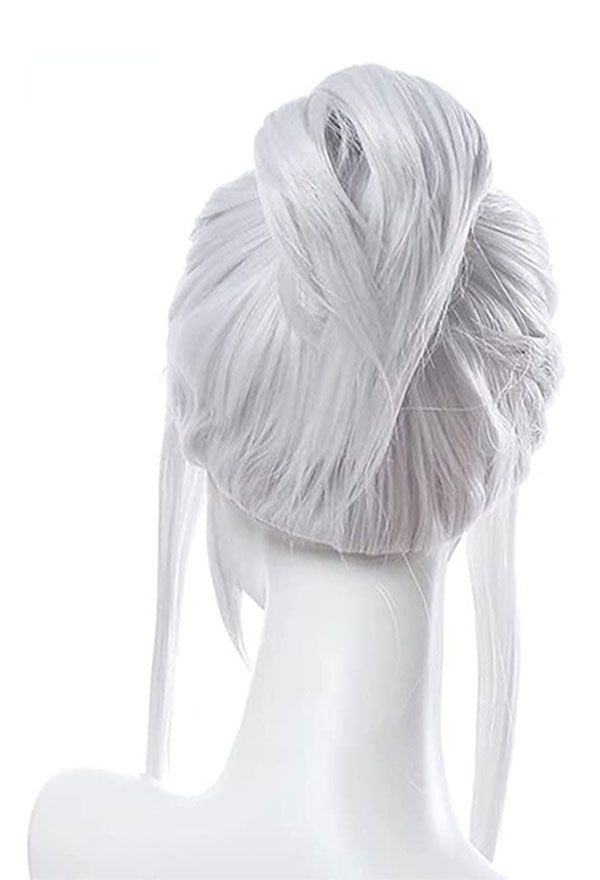 Product Item: White wig with hot sale bun