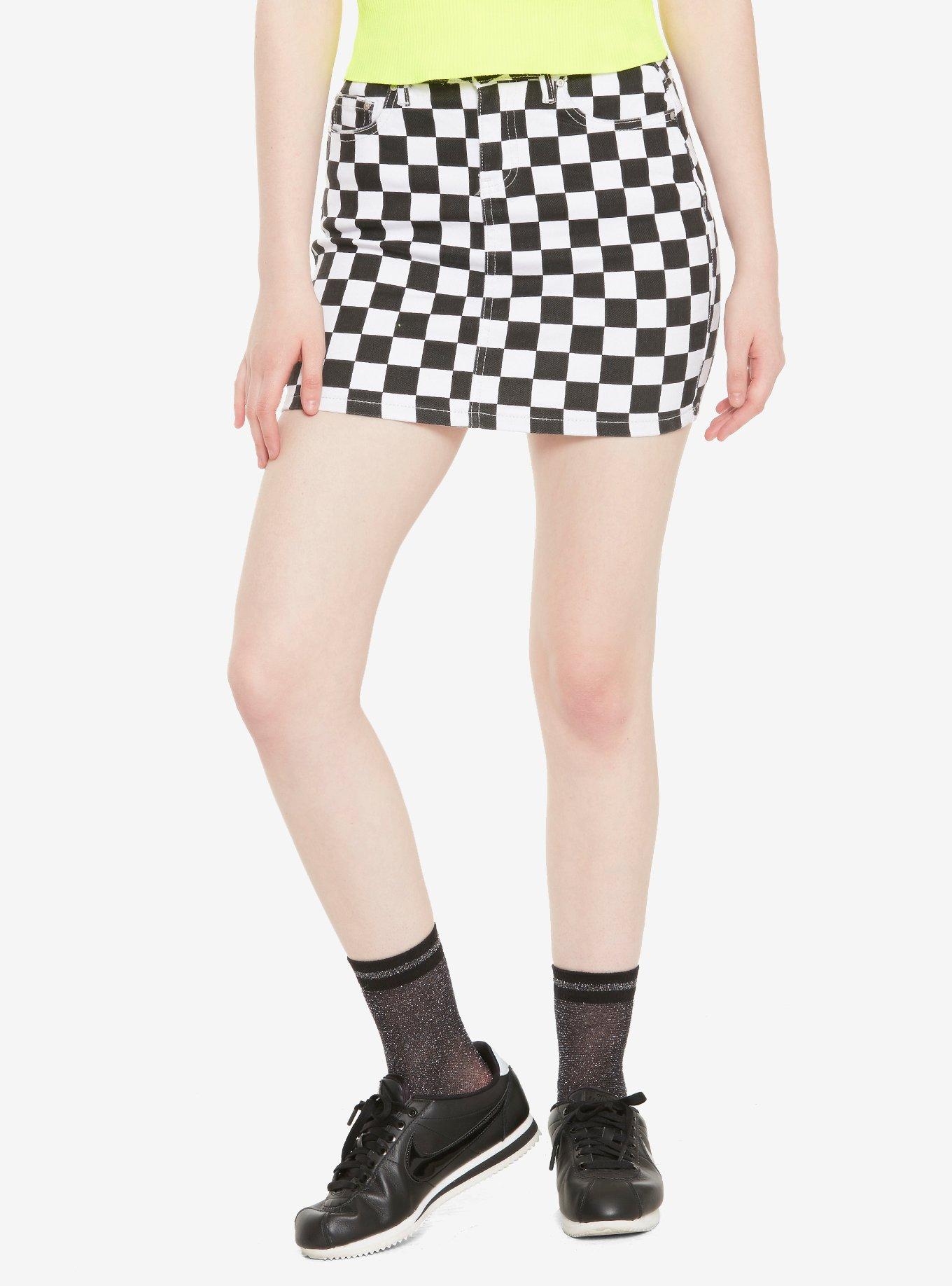 Women's black and white checkered hot sale skirt