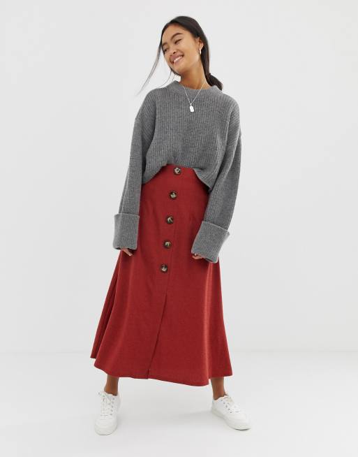 Asos button front midi hot sale skirt