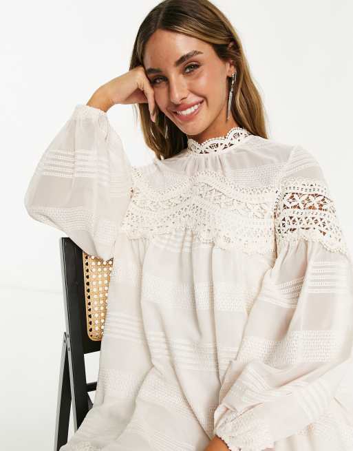 Asos cream lace hot sale dress