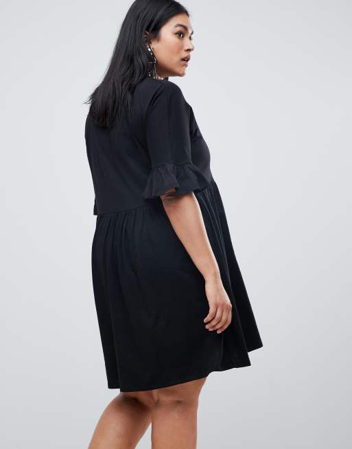 Asos design cotton slubby frill sleeve smock hot sale dress