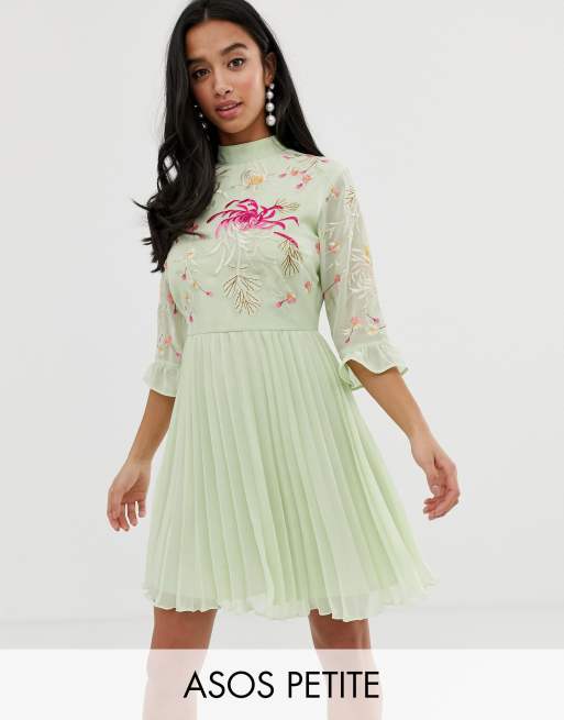 Asos design pleated embroidered mini hot sale dress