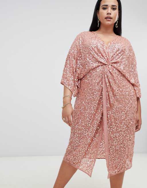 Asos design scatter sequin knot hot sale front kimono midi dress