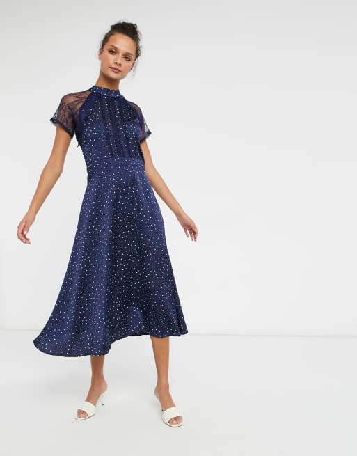 Asos navy polka dot hot sale dress