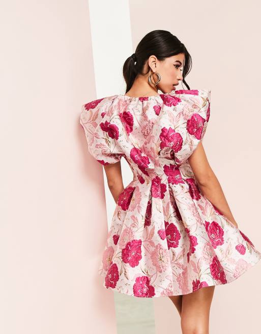 Asos pink floral hot sale dress