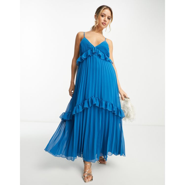 Asos pleated midi dress with ruffle open hot sale back