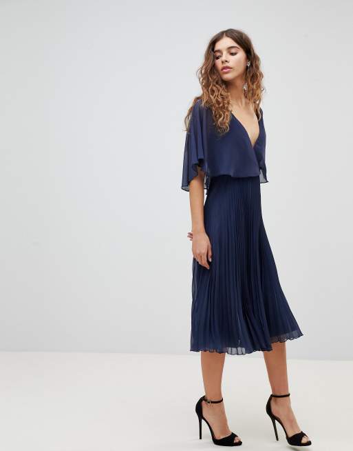 Asos pleated skirt midi hot sale dress