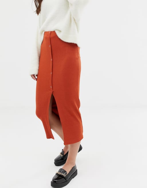 Asos rib popper midi hot sale skirt