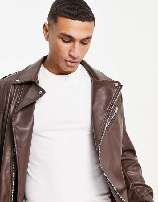 Asos tan leather hot sale jacket