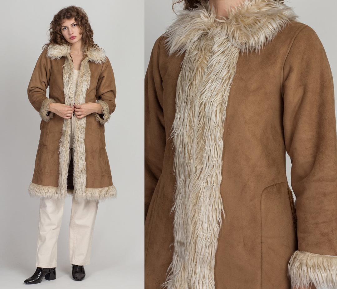 Product Item: 70s suede coat with fur hot sale trim