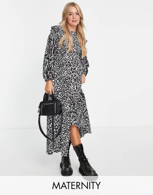 Black and white hot sale animal print maxi dress