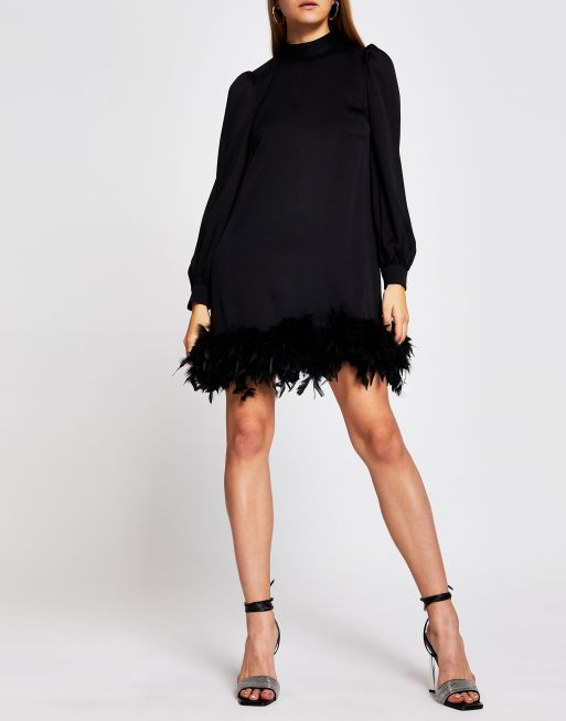 Black dress with feather hot sale hem